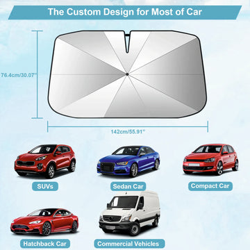 - 【Compatible with most auto】: This car sun shade fit the front windshield of most cars, including Sedan, trucks, SUV, RV, minivans or vans.
