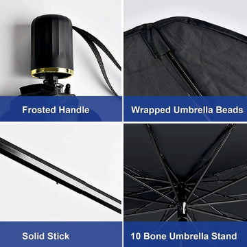 - 【Easy to fold and store】: Foldable car umbrella, very easy to open and close. A leather storage bag is included in the packaging for more convenient storage. Save space inside your car.